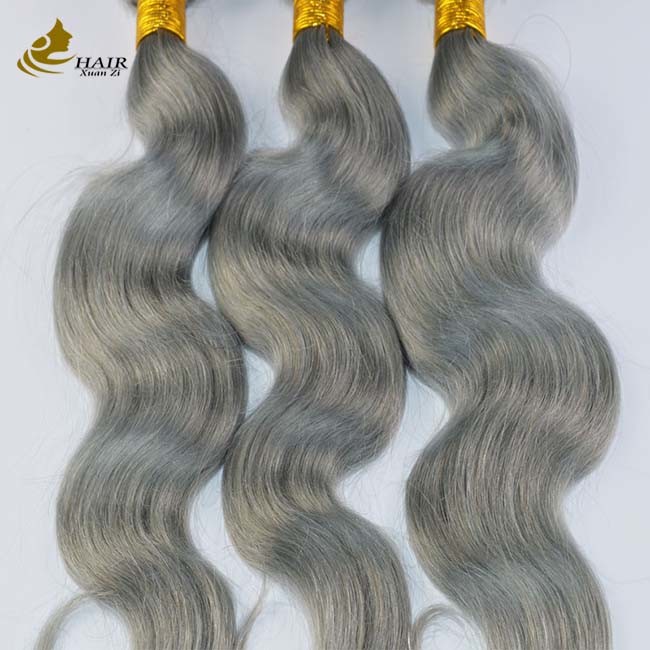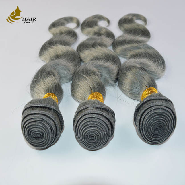 ওম্বার প্ল্যাটিনাম সিলভার গ্রে রঙ মানব চুল বন্ধক সহ ওয়েভ বান্ডিল